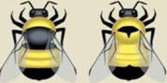The Rusty Patched Bumble Bee is on the right as opposed another typical bumble bee species. The Rusty-Patched Bumble Bee workers have a distinctive rusty patch on the front half of their second abdominal segment. The first abdominal segment and the rear half of their second abdominal segment are both yellow. All other abdominal segments are black. (Differences in Honey Bee, 1999)